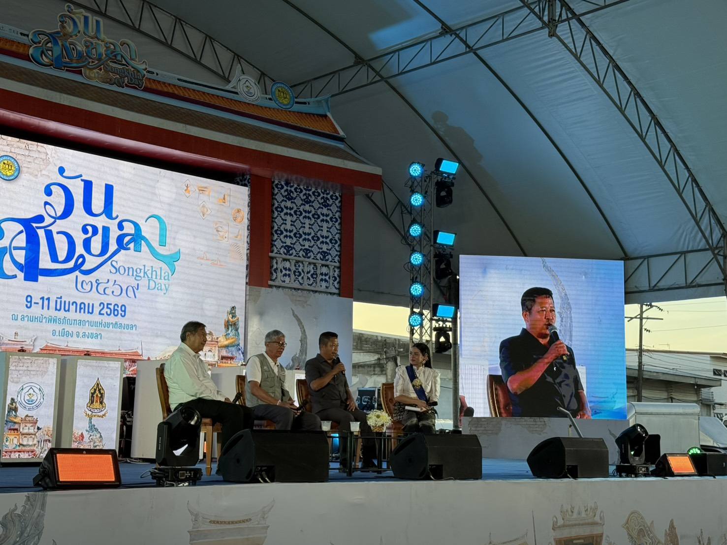 วันนี้ วันอังคาร ที่ ๑๐ มีนาคม ๒๕๖๙ ณ ลานหน้าพิพิธภัณฑสถานเเห่งชาติสงขลา บรรยากาศเต็มไปด้วยรอยยิ้มและความภาคภูมิใจใน "งานวันสงขลา" โดยได้รับเกียรติจาก ผู้ช่วยศาสตราจารย์ ดร.บรรจง ทองสร้าง ผู้อำนวยการสำนักศิลปะเเละวัฒนธรรม มหาวิทยาลัยราชภัฏสงขลา ร่วมเสวนาถ่ายทอดเรื่องราวล้ำค่าของเมืองสงขลาบนเวที